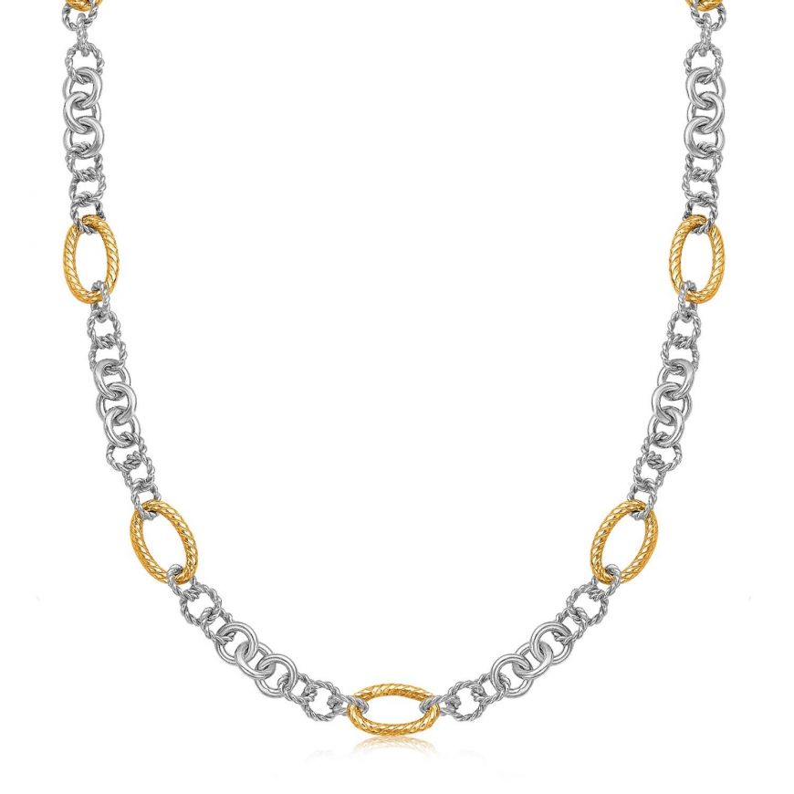 18k Yellow Gold and Sterling Silver Rhodium Plated Multi Style Chain Necklace