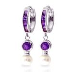 4.15 Carat 14K White Gold Huggie Earrings Pearl Amethyst