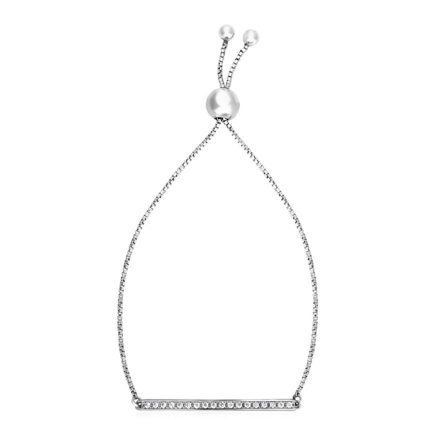 Adjustable Bar Bracelet with Cubic Zirconia in Sterling Silver