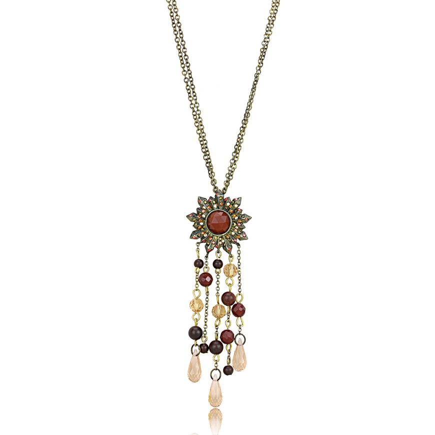 Chain Pendant Brass Antique Copper Synthetic Garnet Onyx Round
