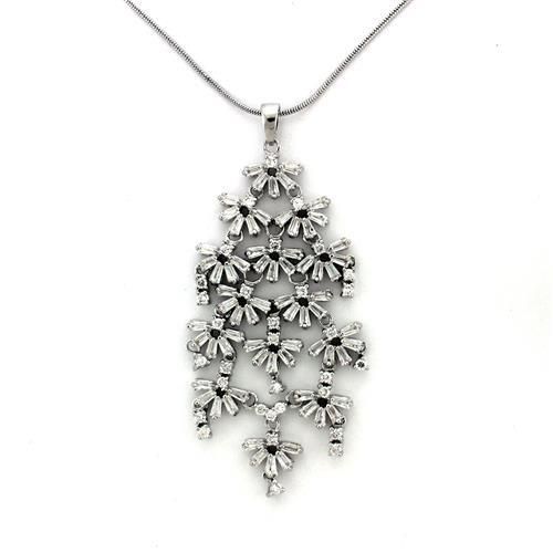 Chain Pendant Brass Rhodium AAA Grade CZ Clear