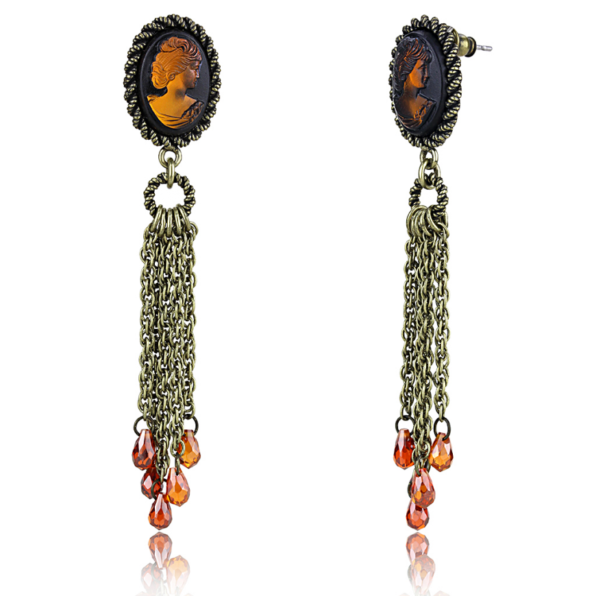 Earrings Brass Antique Copper Synthetic Smoked Quartz Synthetic Stone Oval
