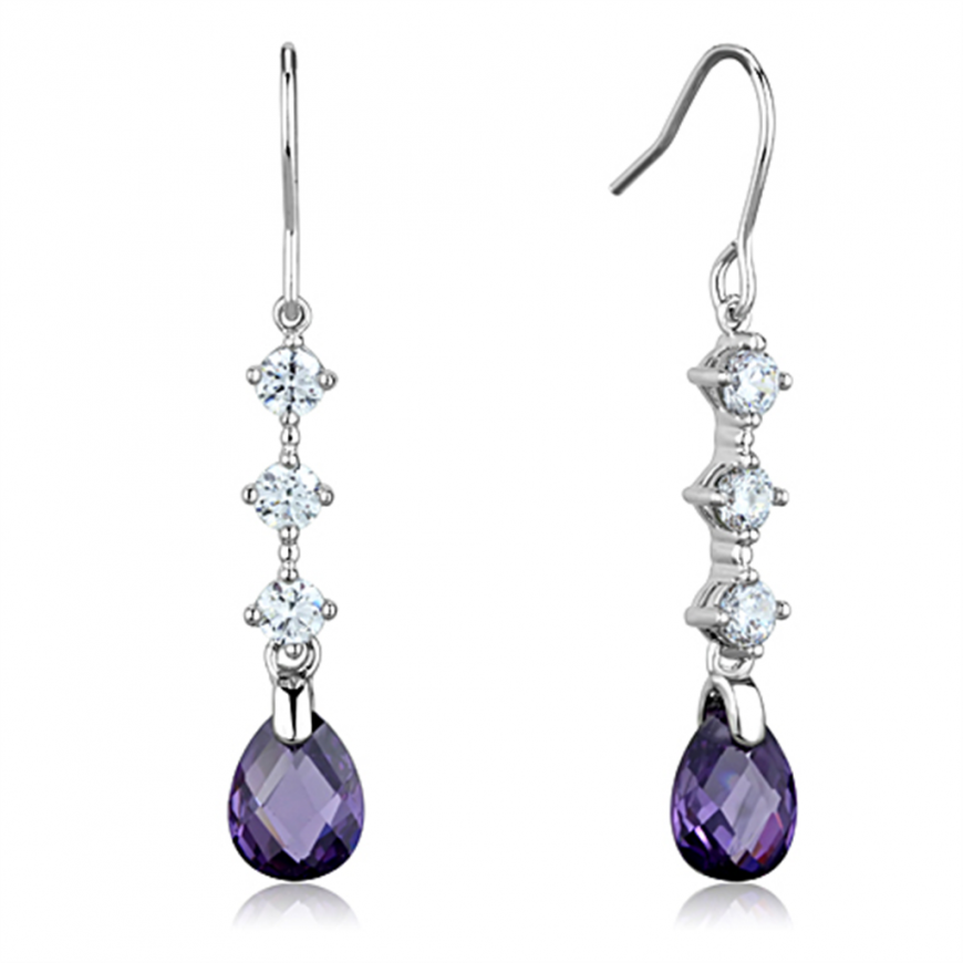 Earrings Brass Rhodium AAA Grade CZ Amethyst