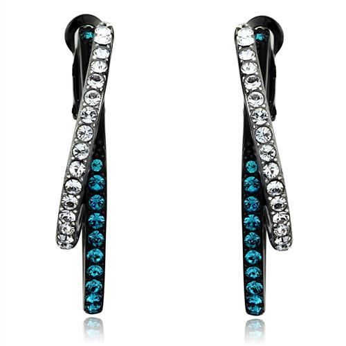 Earrings Stainless Steel Two-Tone IP Black (Ion Plating) Top Grade Crystal Blue Zircon