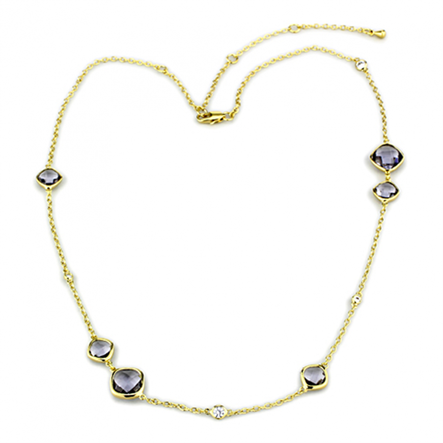 Necklace Brass Gold Synthetic Amethyst Synthetic Glass