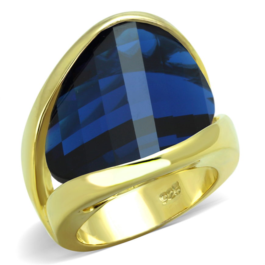 Ring 925 Sterling Silver Gold Synthetic Montana Synthetic Glass